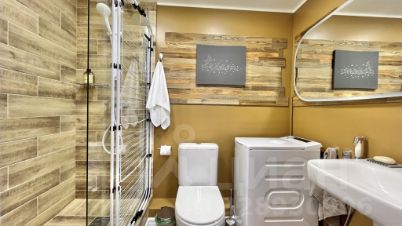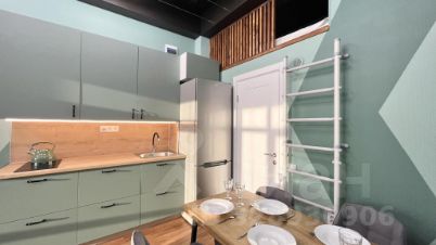 Кухня-гостиная: 2-сп. диван, 2-сп. кровать на мезонине. Кухонный гарнитур с полным оснащением, микроволновка, варочная панель, аэрогриль, холодильник, обеденный стол 6 стульев, большой ТВ, электро-гитара и комбик, колонка с "Алисой" и управлением умным домом, кондиционер, теплые полы;