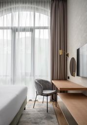 Современные однокомнатные номера с оригинальной дизайнерской отделкой располагаются со второго этажа и выше. Имеют боковой вид на горы. Вы можете выбрать номер с двухспальной кроватью или двумя односпальными. Это идеальный выбор для гостей, ценящих комфорт и уют, но при этом предпочитающих более доступные варианты размещения в нашем горном отеле. Гости номеров Улучшенный Стандарт имеют доступ ко всем удобствам нашего бутик-отеля, включая ресторан с изысканной кухней, спа-салон, тренажерный зал и другие.