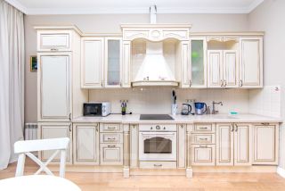 Просторная кухня-гостиная с балконом, откуда открывается завораживающий панорамный вид на море.