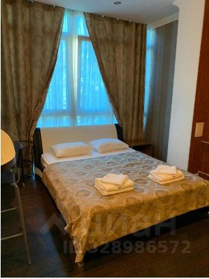 В номере кухонный гарнитур с плитой, духовкой, микроволновкой, чайником; двуспальный диван, большая двуспальная кровать.