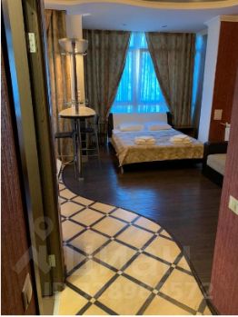 Комната поделена на зоны: спальня, кухня-гостиная.