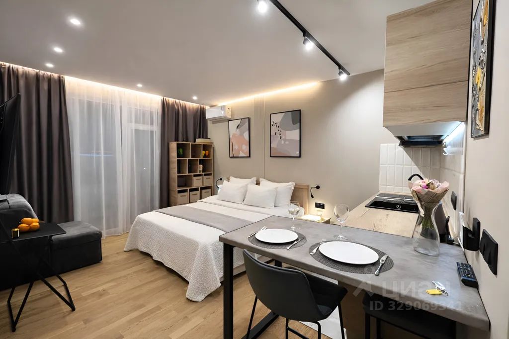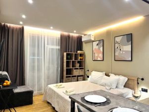 Предлагаем вам светлую, солнечную стильную студию площадью 26 м² на 2м этаже с просторным балконом, откуда открываются живописные виды на морскую гладь и предгорья кавказа. До пляжа "волна" всего 15 минут пешком(2 пути, выбирайте более комфортный)