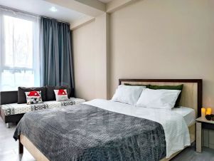 В квартире есть: холодильник, плита, стиральная машина, кондиционер. Посуда, постельное бельё, полотенца. Интернет Wi-Fi, ТВ. Полноценная 2-спальная кровать с хорошим матрасом и раскладной диван.