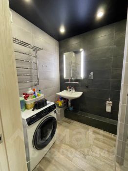 Совмещенный санузел оформлен в современном стиле с качественной плиткой.