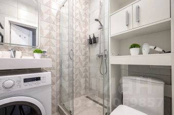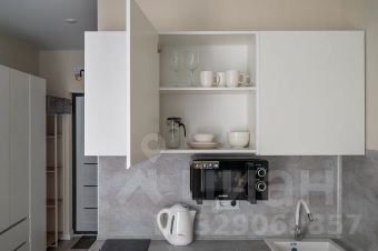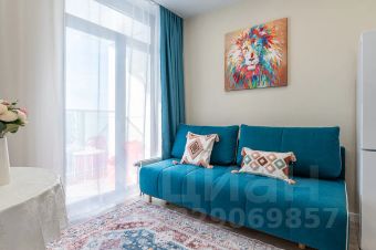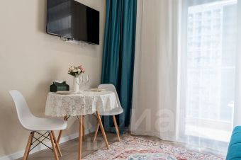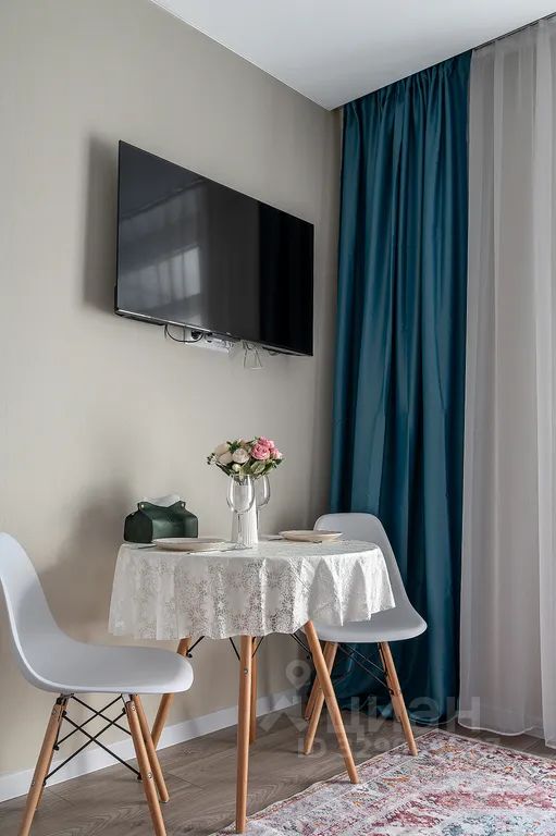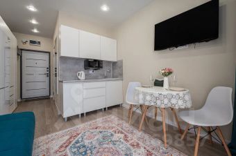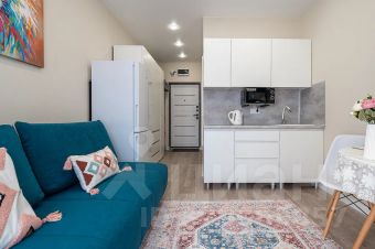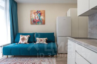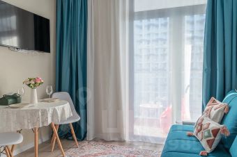 Современная студия с дизайнерским акцентом и продуманной планировкой.