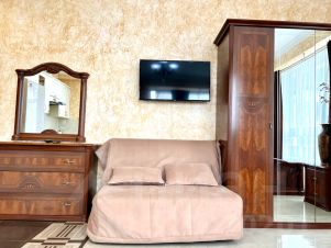 В квартире среди удобств гостиный уголок, телевизор с кабельными каналами и собственная ванная комната с феном и душем. В распоряжении гостей микроволновая печь, холодильник, духовка и чайник.