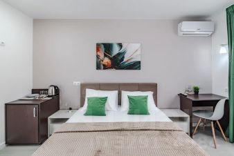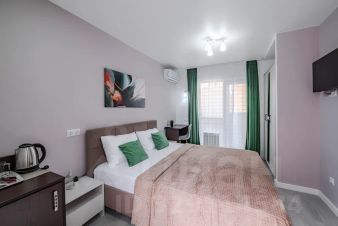 Наш Отель находиться в Адлере, в первой береговой линии, это в 3-х минутах ходьбы от пляжа Южный-2. Рядом с нами имеется множество минимаркетов, "Магнит", "Красное & Белое", а также кафе, столовые, рестораны, аптеки, WB, Ozon.