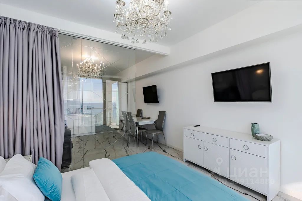 "Crystal" - студия 35 кв.м. с потрясающим видом на море, собственной кухней, просторной лоджией оборудованной ротанговой мебелью, двуспальной кроватью размера king-size, а также бесплатный Wi-Fi. Апартаменты расположены в самом центре Сочи в отеле Серенити Премиум, на первой береговой линии рядом с Приморской набережной и Морским портом.