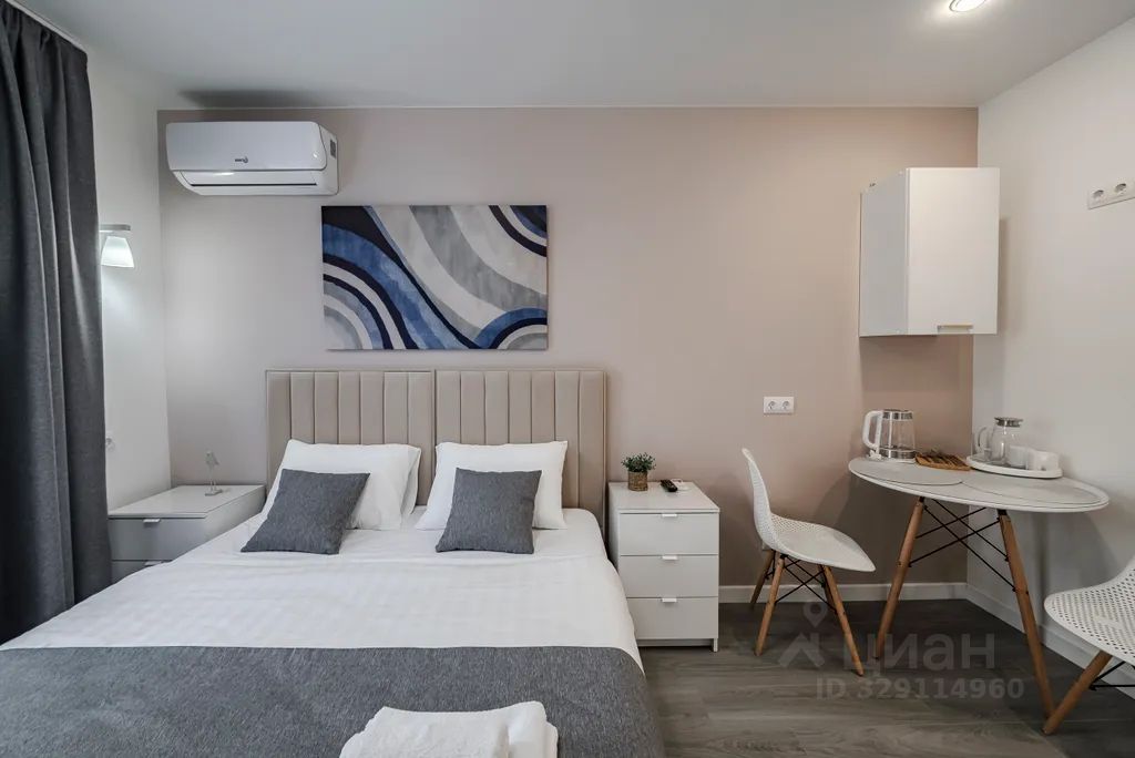 Оснащение: WiFi, ТВ Smart, кондиционер, холодильник, постельное белье, полотенца, гигиенические принадлежности, фен, чайник, посуда, утюг.