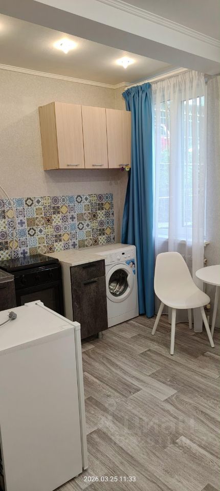 Собственник. Светлая студия после ремонта с новой техникой и мебелью. Сдается с 21 апреля 2026 на длительный срок, без детей, проживание с животными обсуждается отдельно. Спальный район. В доме собственная котельная для отопления и подогрева горячей воды. В квартире всегда сухо, тепло.