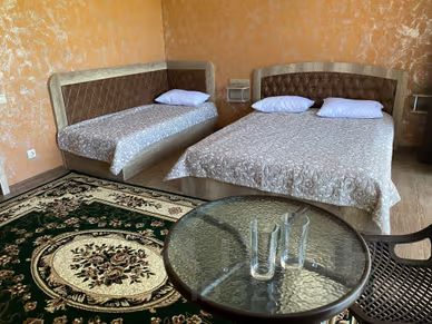 В номере: двуспальная и односпальная кровати, а также есть возможность установки дополнительного спального места.