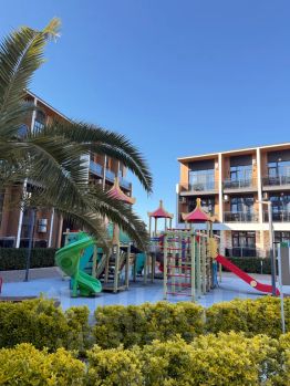 Апартаменты сдаются впервые в 2026 году. Новый комплекс с двумя бассейнами, детская площадка. Территория огорожена с видеонаблюдением, охраняется.