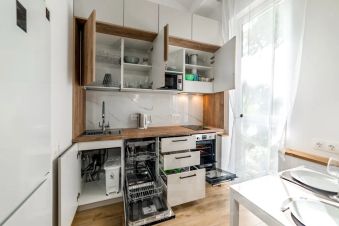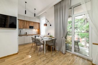 Современные новые двухуровневые апартаменты, расположены на 3 этаже небольшого клубного дома "розмарин". Апартаменты располагаются в тихом спокойном месте в дали от шумных дорог и пляжных тусовок, с закрытым двором, парковкой и выходом на балкон в тень гималайских кедров. Предназначены доя проживания 5-6 гостей (5 взрослых или 4 взрослых +2 детей), укомплектованы всем необходимым для краткосрочного или длительного пребывания. До моря 150 метров, аэропорт в 15 минутах езды на машине. До Красной поляны 30-40 минут. Квартира светлая уютная, с двумя санузлами. На 1 этаже кухня, гостиная с диваном, небольшая гардеробная и большой санузел со стиральной машиной. На кухне есть вся необходимая посуда. На 2 этаже двуспальная кровать, небольшой диван и туалет.