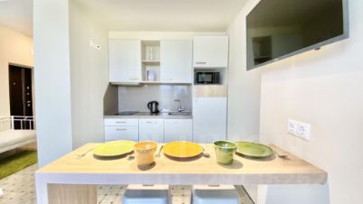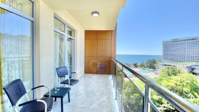 Апартаменты студия с видом на море 35 кв.м, расположены на 8 этаже, вместимостью 3 человека. Дом на первой линии моря, парк, городской бассейн с морской водой, центральный пляж, спа и вся инфраструктура, активности для отдыха.