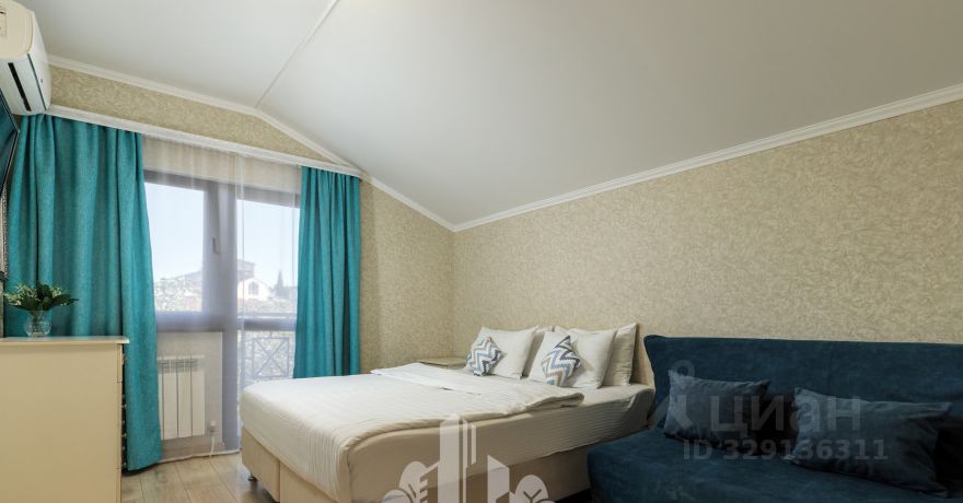 Апартаменты, площадью 30 кв.м включают в себя спальню, с одной двухспальной кроватью и кресло-кроватью, а также кухню. Уютный балкончик, с которого открывается вид на горы и аллею отлично дополняет объект.
