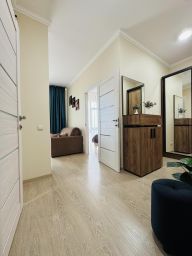 Новая светлая евродвушка с изолированной спальней, кухней-гостиной и уютным балконом. Размещается 4 гостя