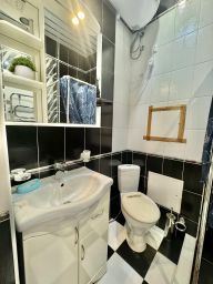 В квартире есть все, что нужно для комфортного проживания: двуспальная кровать, раскладной диван, постельное белье и полотенца, Wi-Fi, кондиционер, полностью оборудованная кухня с обеденной зоной, телевизор, собственная ванная комната с душем и феном, микроволновая печь, холодильник, плита и чайник.