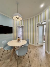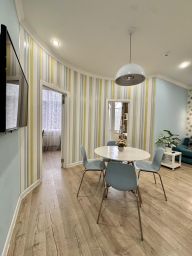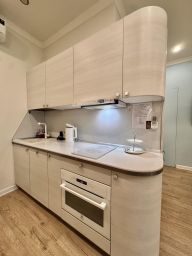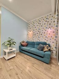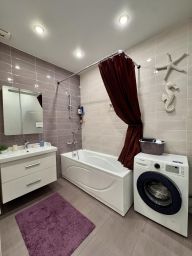 В квартире есть все, что нужно для комфортного проживания: двуспальная и односпальная кровати, раскладной диван, постельное белье и полотенца, Wi-Fi, кондиционер, полностью оборудованная кухня с обеденной зоной, телевизор, собственная ванная комната с душем и феном, микроволновая печь, холодильник, плита и чайник.