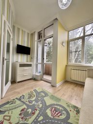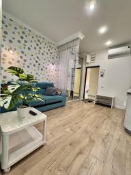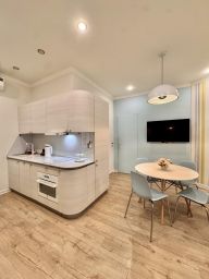 Квартира с кухней гостиной и двумя спальнями находится в жилом комплексе "Дельфин у моря", который расположен в центре Адлера, в пешей доступности от центрального пляжа.