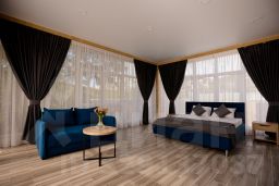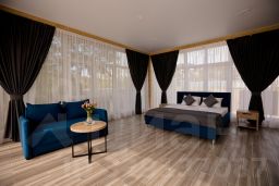 К размещению подготовлены уютные комнаты, где будет комфортно отдыхать. Они обустроены стильной мебелью, кондиционером и ЖК-телевизором. В свободном доступе Wi-fi. Собственная ванная комната укомплектована феном и необходимыми косметическими средствами.