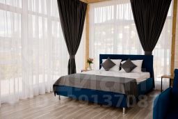 В комнате предусмотрено наличие большой двуспальной кровати.