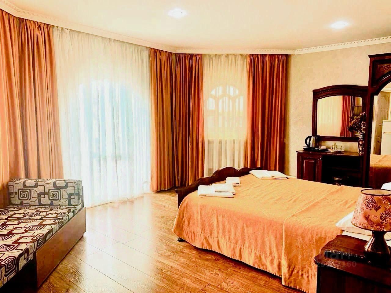 3-х местные номера категории "Люкс" с балконами - просторные уютные двухкомнатные номера со всеми удобствами. В каждом номере телевизор, кондиционер, шкаф, туалет, душ, холодильник, электрический чайник, фен. Номера данной категории имеют балконы с видом на окрестности либо на море. На балконах для комфорта отдыхающих есть столик и стулья.