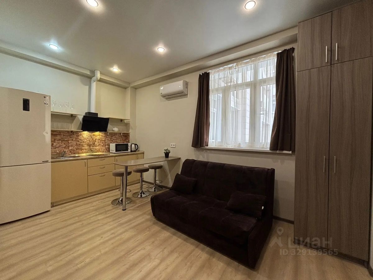 Небольшая площадь грамотно организована и оснащена мебелью и всей необходимой техникой. Окно выходит во двор, квартира не видовая, что обеспечивает тишину и уютную обстановку для отдыха после насыщенного дня.