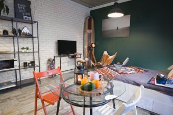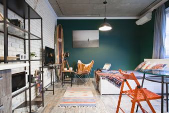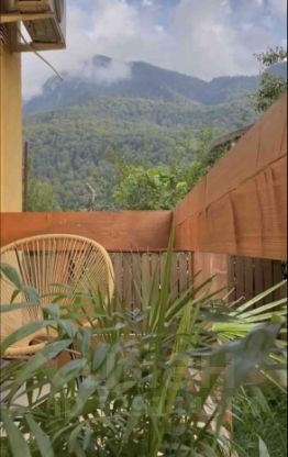 Комфортная студия для одиночки или пары. Ничего лишнего, но полноценная кровать и просторная ванная комната с окном залитая светом. Балкончик с видом на горы. Тихо .