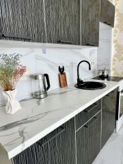 В квартире есть все необходимое для проживания и отдыха. Постельное белье из прачечной (мы следим за чистотой), пушистые полотенца, фен - все на своих местах). Холодильник, чайник, микроволновка. Кровать 140 см, диван 140 см.