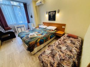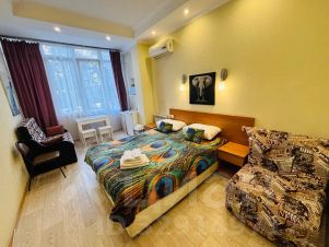 Мы находимся в лучшем районе города Сочи. В самом центре. Набережная моря с кафе, пляжами, шезлонгами в 150м. Рядом цирк, дендрарий, пляж маяк, морской порт. На первом этаже хорошая столовая со вкусными и недорогими блюдами. На территории парковка, лифт, бюро экскурсий.