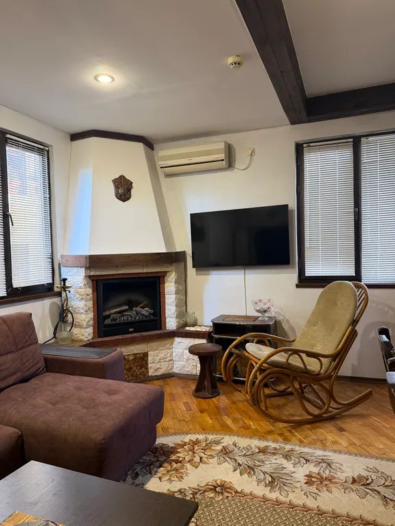 Большой обеденный стол, камин с креслом- качалкой