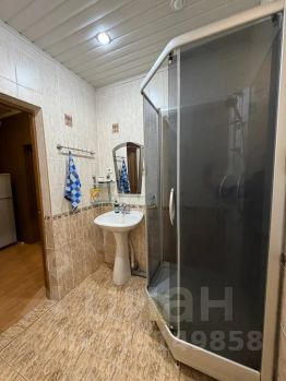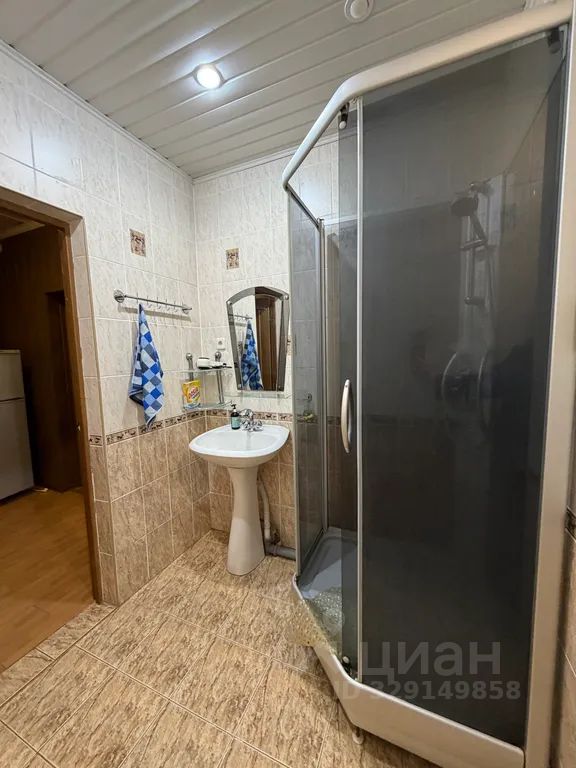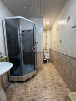 Ванная комната с душевой кабиной и туалетными принадлежностями