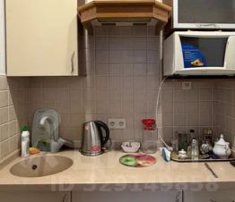 Кухонная зона с микроволновой печью, электрическим чайником, необходимым набором кухонных принадлежностей, без плиты