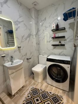 Уютная квартира в районе курортного городка. Рядом вся инфраструктура: магазины парк аттракционов, дилфинарий, океанариум, остановки ласточки и автобусов. 15 мину до моря. Квартира в новом доме, с новой мебелью и техникой. Два двухспасльны места. На кухне посуда, микроволновка, газовая плита.