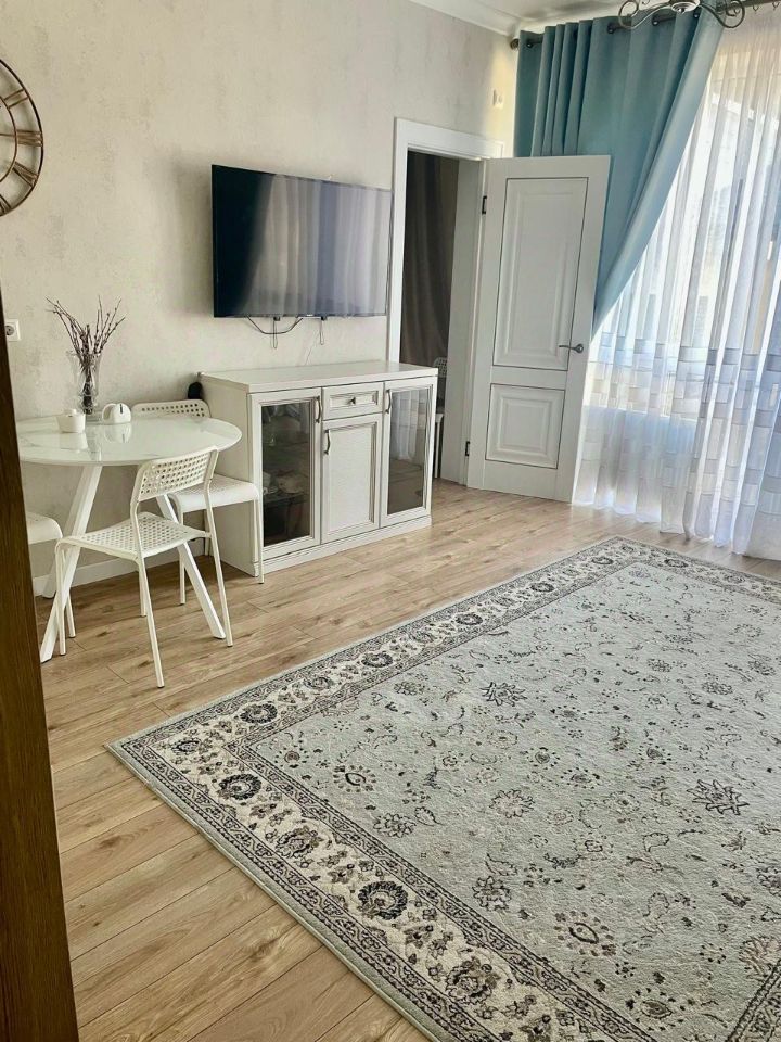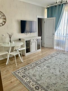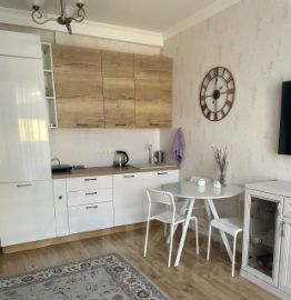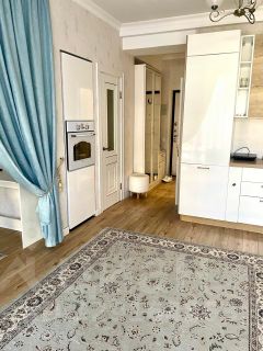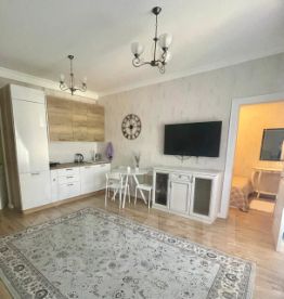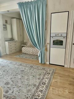 • Большая кухнягостиная с раскладным диваном, техникой и посудой.