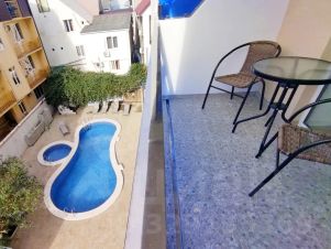 Вид с балкона номера во двор на бассейн.