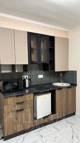Современная мини-кухня: электроплита, микроволновка, холодильник, электрочайник