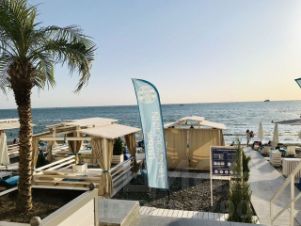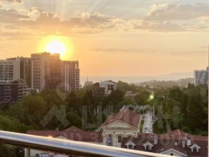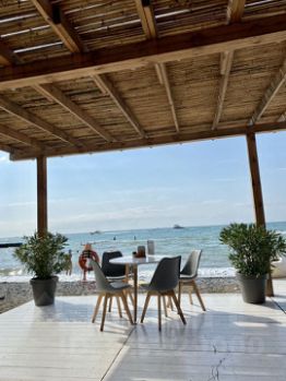- балкон с уютной мебелью и потрясающими видами на море, город, закат