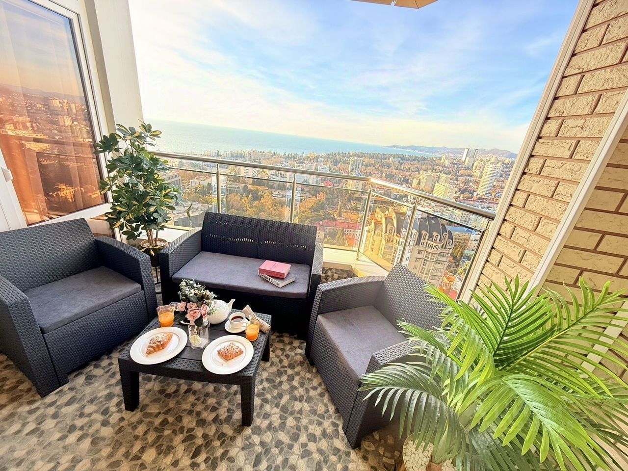 Квартиpa СУПEР BИДOBAЯC большим балконом и c прямым видом на морe и город