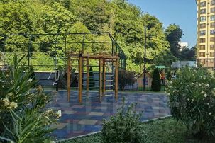 На территории вы найдете детские площадки, футбольное поле, уличные тренажеры и кофейню. В шаговой доступности расположены все необходимые магазины и услуги: "Магнит", "Пятерочка", продуктовый рынок, аптека, пекарня, кафе и рестораны. Кроме того, рядом находится отель с спа-комплексом, включая сауну, хамам и бассейн.