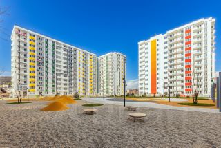 Все подъезды оснащены пандусами и грузовыми лифтами , что делает комфортным проживание с детьми и людей с ограниченными возможностями