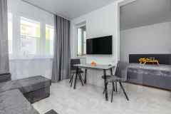 В гостиной комнате расположена удобная и комфортная кровать размера king-size с ортопедическим матрасом высокого уровня, на кухне-гостиной двухспальный раскладывающий диван-кровать - комфорт класса, в коридоре большой вместительный встроенный шкаф, Smart TV в каждой комнате и стабильный интернет!