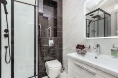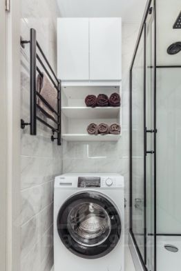 Санузел оборудован душевой с дорогой и качественной сантехникой, стиральной машиной и феном.