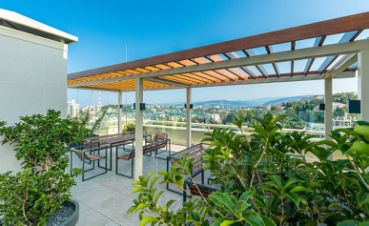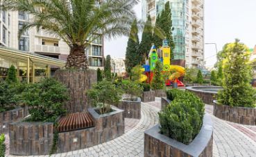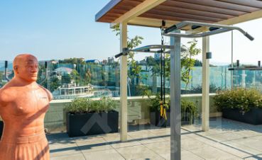 На панорамной Крыше комплекса: бассейн, лежаки, спортивная и детская площадки, тренажёры, вечерняя лаундж-зона на крыше с wi-fi.