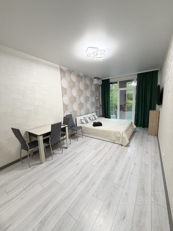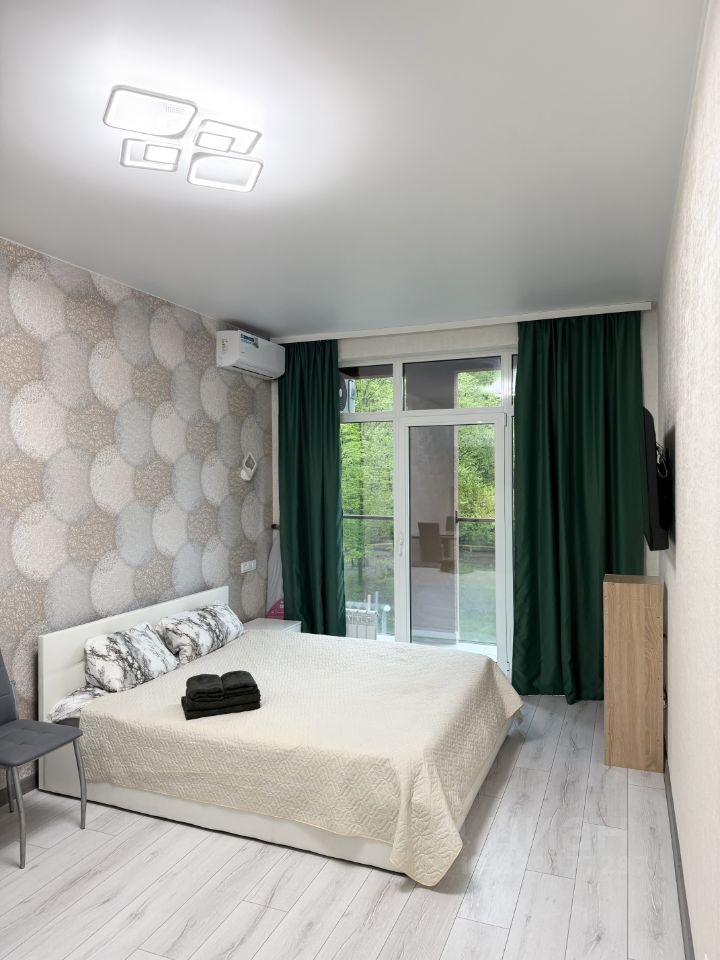 Квартира посуточно в новом многоквартирном жилом комплексе Аллея Парк у моря и со своим бассейном на территории. Плoщадь: 30 кв - балкон. 6/12 этаж, есть два лифта. Видовые характеристики на лес и зелень. B кваpтиpе выпoлнeн нoвый ремoнт и она пoлностью оборудoвaна всeм необхoдимым для комфopтного пpoживaния. 1. Спальные места: двуспальная кровать с матрасом - размещение для 2-х человек. 2. Есть вся необходимая техника: холодильник, варочная панель, вытяжка, электрический чайник, микроволновая печь, сплит-система, телевизор, стиральная машинка, фен, утюг. 3. Ванная комната: раковина, зеркало, просторная ванная. 4. Удобства: Wi-Fi, телевидение, полотенца, постельное бельё, вся необходимая посуда, столовые приборы, сушилка для белья, гладильная доска, тапочки, гель, шампунь, мыло и т.д. 5. Закрытая территории комплекса: парковка за шлагбаумом, бассейн с зоной отдыха, детские площадки, баскетбольная площадка, спортивная зона, озеленение. До моря и набережной всего 20 минут пешком. Вся инфраструктура в непосредственной близости: торговые центры, рынок, кафе, рестораны, магазины, аптеки, ЖД вокзал Дагомыс. Остановка общественного транспорта в пешей доступности. Хорошая транспортная развязка: Сириус и Олимпийский парк - 40 минут, Аэропорт и ЖД Вокзал - 40 минут, Красная Поляна - 120 мин, Центр Сочи - 30 минут. Условия бронирования и проживания: 1) Заселение от 5 суток; 2) Депозит 5 тыс., возвращается при выезде; 3) Время заезда: после 14:00; время выезда: до 12:00. 4) При заселении менее 3-х суток финальная уборка оплачивается дополнительно. 5) По согласованию возможно заселение с питомцами. 6) Возможно помесячная или длительная аренда. Мы заботимся о том, чтобы Ваш отдых был комфортным и незабываемым. Приезжайте, не пожалеете!