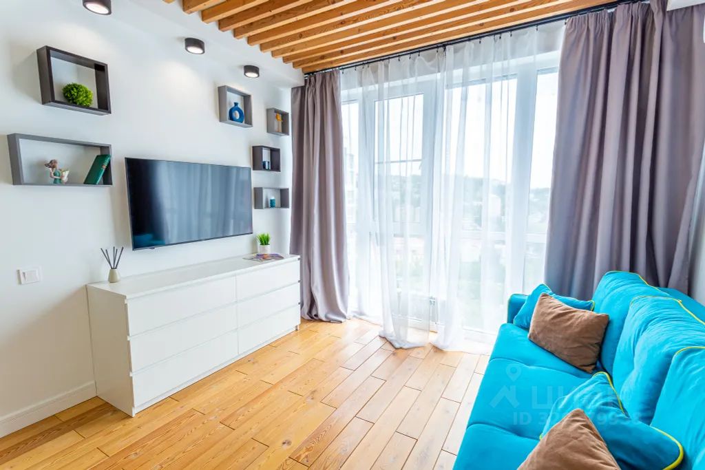 Планировка: изолированная спальня (кровать 1600*2000), кухня-гостиная (раскладной диван-кровать), совмещенный санузел.