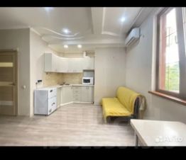 Квартира с дизайнерским ремонтом, полностью готова к проживанию. В комнате и на кухне есть вся необходимая мебель. В кухонной зоне имеется холодильник, кондиционер, стиральная машина и телевизор. Санузел совмещенный, оборудован ванной.