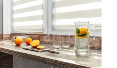 Во второй зоне: двуспальный диван с удобным основанием, стол, стулья, телевизор, шкаф-гардероб. Второй санузел из гостиной зоны, в нем: подвесной унитаз, раковина, запасной водонагреватель.