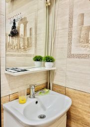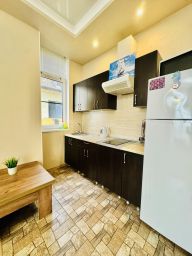 В каждой квартире есть все, что нужно для комфортного проживания: спальные места, постельное белье и полотенца, по количеству гостей в номере! Wi-Fi, кондиционер, полностью оборудованная кухня с обеденной зоной, всей техникой и посудой!!! телевизор, кондиционер собственная ванная комната с душем и феном, микроволновая печь, холодильник, плита и чайник.