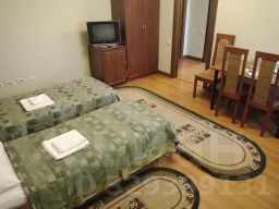 Комфортная бюджетные апартаменты,разделена на две зоны, для семьи из 4 человек, находится на 6 этаже. 4 раздельные кровати. По требованию гостей кровати можно соединить. Номер оснащен всем необходимым для длительного отдыха. Большой балкон со столом и стульчиками, прекрасный вид.